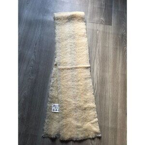 Luxurious winter accessories crafted with delicate mohair blend, offering warmth and elegant texture. Soft, lightweight hat with wide brim and matching long scarf create a coordinated ensemble for cold weather styling.