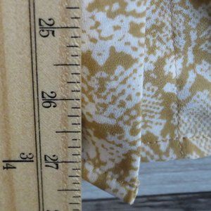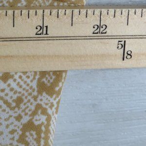 Pre-Owned Condition! 100% Polyester. Elegant Dark Mustard/White Color Snakeskin Print Design Blouse with Mother of Pearl Flat Buttons, Removable Tie Neck.