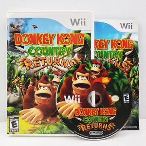 Donkey Kong Country Returns (2010) Nintendo Wii video game (disc, manual, case), tested. Please note light hairline wear on underside of disc, shown. Ships safely bubble wrapped with cardboard backing in a padded polymailer :)