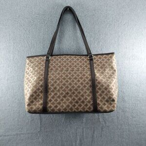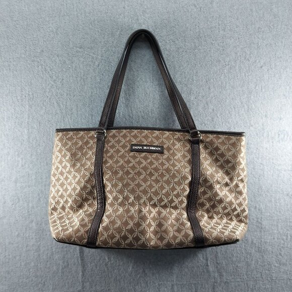 The Donna Buckman Designer Tote Bag offers style and functionality with its elegant brown and beige patterned jacquard complemented by leather trim. This spacious tote is ideal for carrying essentials while maintaining a chic appearance. Its durable construction and stylish design make it an excellent choice for daily use.