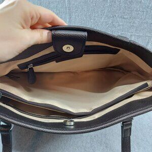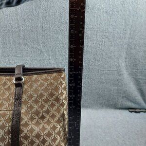 Donna Buckman Designer Tote Bag Brown & Beige Patterned Jacquard With Leather Tr