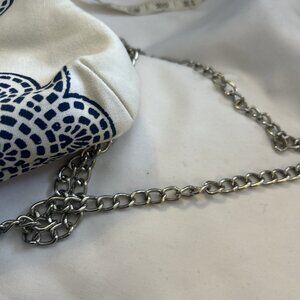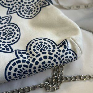 Donna Dixon Handbag Purse Blue Shoulder Crossbody Chain Straps Canvas Kiss Clasp