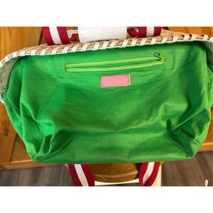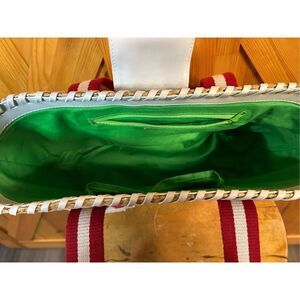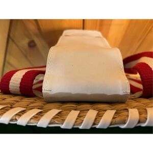Donna Dixon Jennifer Rattan Basket Weave Red White Strap Tan Tote Handbag Purse