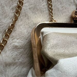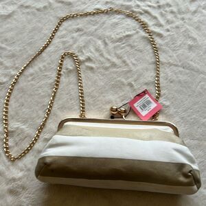 Donna Dixon Tippy Gold & White Kiss Lock Clutch NWT