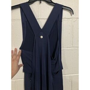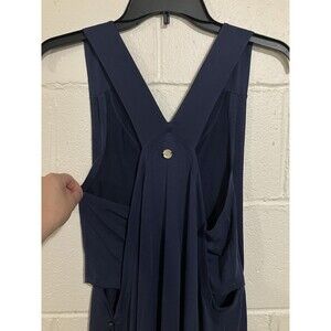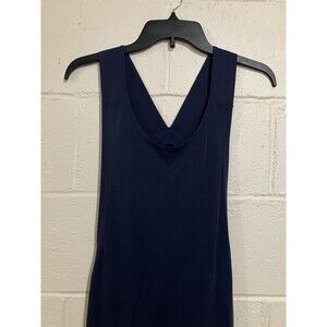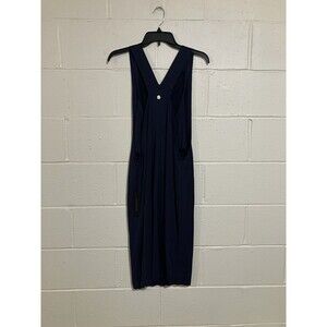 This Donna Karan Active dress is a navy midi-length pencil dress made from a stretchy fabric blend of 64% Modal and 36% Polyester. It features a sleeveless design with a round neckline and a pullover closure. The dress is in size XS and is designed for women who prefer a regular fit. Perfect for a stylish and comfortable look, this versatile piece is ideal for various occasions with its sleek and modern design.