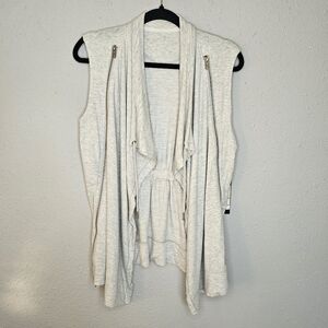 Donna Karan Active Open Cardigan Jacket Womens S Vest Zippers Logo Gray