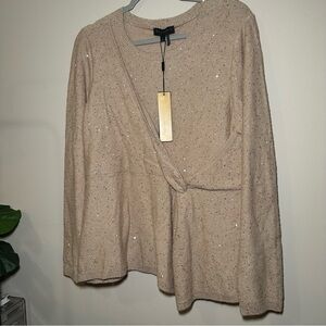 Donna Karan Beige Sequin Knit Side Knot Sweater Top Size XL