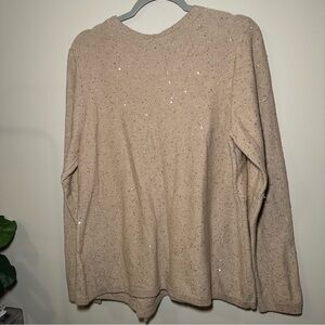 Donna Karan Beige Sequin Knit Side Knot Sweater Top Size XL