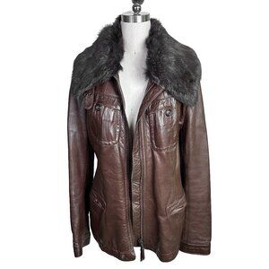 Donna Karan Black Label Leather Moto Jacket w/ Real Fur Collar — Size 12