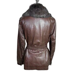 Condition: Excellent vintage condition. Leather is supple with natural creasing, no major flaws. Fur is plush with no shedding. Lining is clean and intact. All zippers and belt functional.
