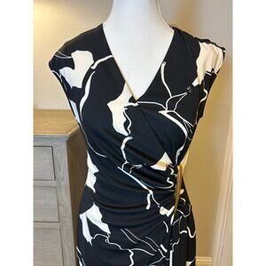 Elevate your wardrobe with this stunning Donna Karan A-line dress. Featuring a unique black and white print, this dress is perfect for any occasion. The dress is in very good condition. Its flattering A-line silhouette and comfortable fit make it a must-have. Grab this beautiful piece today!