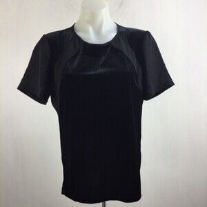 Donna Karan Blouse Short Sleeve Crew Neck Buttons Velvet Blouse Top Black Medium