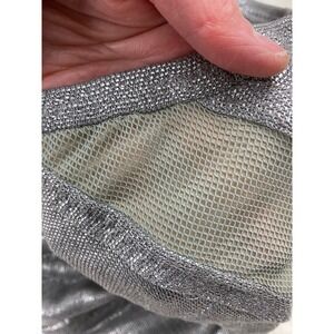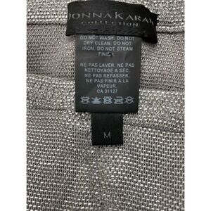 Donna Karan Collection Women's Size M Silver Gray Metallic Stretch Midi Skirt. Pre-owned in good condition, the waist is a little stretched out.