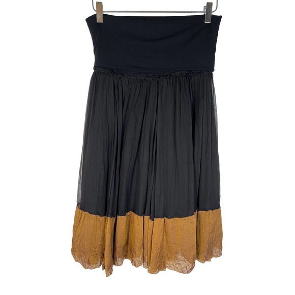 Donna Karan Collection Silk Midi Skirt S Black Bronze Hem Fold Over Waist EUC!