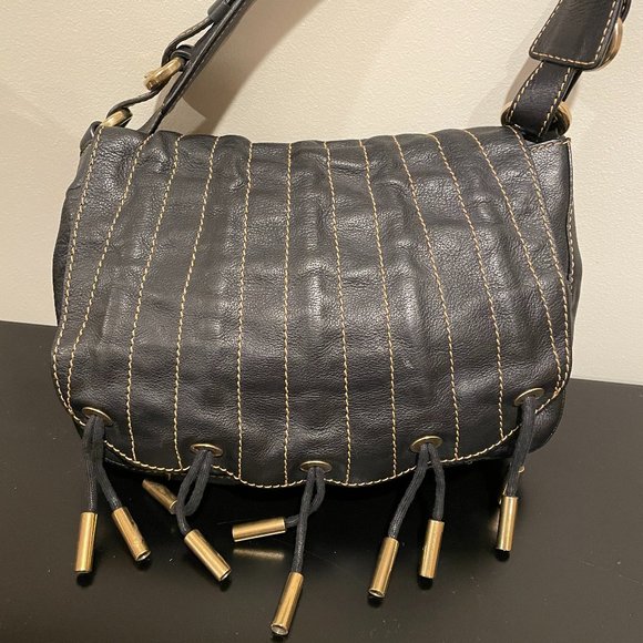 Vintage Donna Karan Collection Black Leather Small Shoulder Evening bag - in perfect mint condition - hardly used. From non-smoking, pet-free home.