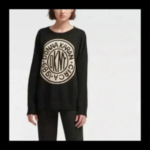 Donna Karan DKNY NWOT Token Logo Black Pullover Sweater