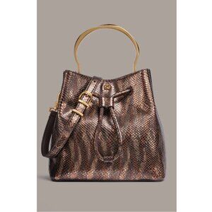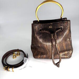 Donna Karan Drawstring Bucket Bag With Metallic Snake Print Leather