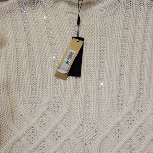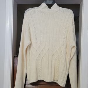 Donna Karan Embellished Cable Knit Mock Turtle Neck Wool Blend Thick long Sleeves Pullover Sweater sz L