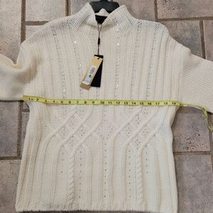 Donna Karan Embellished Cable Knit Mock Turtle Neck Wool Blend Thick Sweater