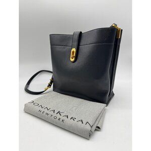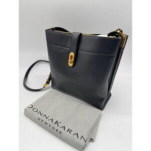 Donna Karan NY Bridgehampton leather triple compartment crossbody+Dust bag BLACK