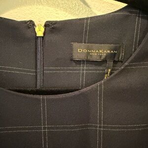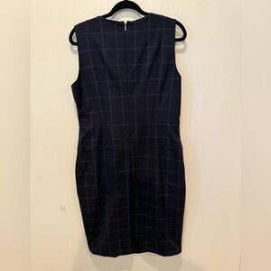 Chic navy midi dress with subtle checkered pattern. Sleeveless design. Ideal for versatile styling. There is no size tag but it is a 10