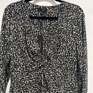 Donna Karan New York Long Sleeve Bodysuit Animal Print Womens Size XL V Neck NWT