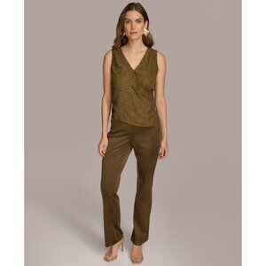 Donna Karan New York Metallic Faux-Wrap Sleeveless Blouse Size XL Green MSRP $79