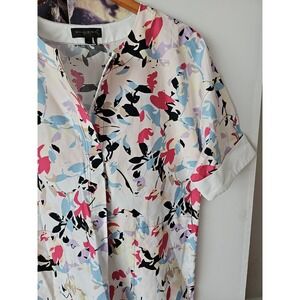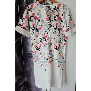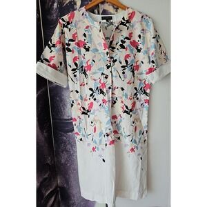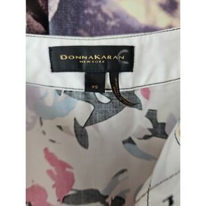 Donna Karan New York Shift Cotton Dress White Floral Print Short Sleeve Size XS