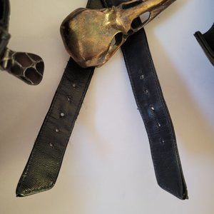 These heels have a beautiful bronze and brown shimmer in sunlight, with deep silver rivets and clasps to draw out its colors