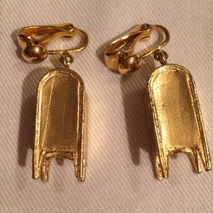 Authentic Donna Karan New York Early Collection Clip On Earrings in the shape of Mailboxes in gold color metal. Very cute, beautiful piece of designer costume jewelry. Very rare. I just had to have them! Great condition. I only wore them once or twice. Lots of fun!