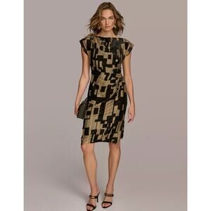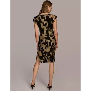 Donna Karan Printed Velvet Extended Shoulder Dress Knee Length Cocktail US 6 NWT.