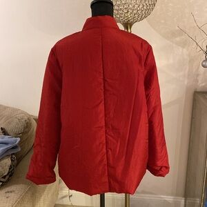 Donna Karan Red Puffer Jacket Quilted Stand-Up Collar size L