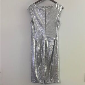 Shimmer in this stunning silver sequin dress from Donna Karan - perfect for any special occasion. The elegant design ensures you stand out in style.