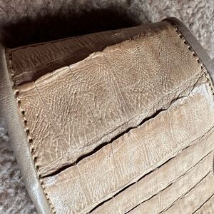 Handcrafted from genuine Cayman crocodile, its natural texture whispers of rare luxury, while its velvety suede interior promises comfort that is surprisingly human.