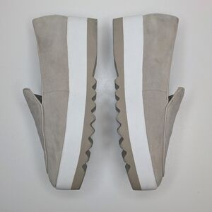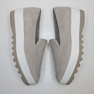 Donna Karan Suede Platform Loafers Taupe Gray Tan Women's Size 7.5