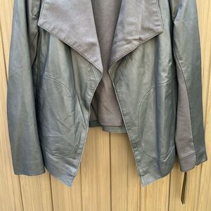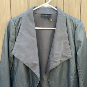Donna Karan Women's Leather Jacket Open Front Drape Collar Small Boho NWT