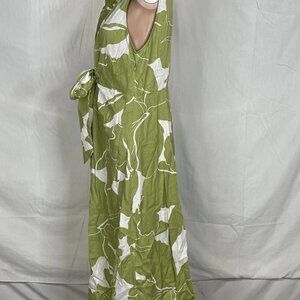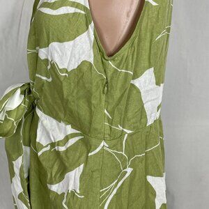 Donna Karan Women’s Printed Linen Blend Shirt Dress Size 14 Green