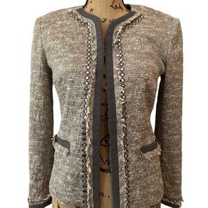 Donna Karan Women’s Tweed Frayed Metallic Beaded Blazer Jacket Size Small