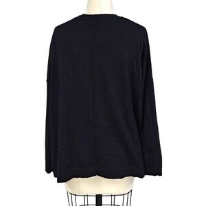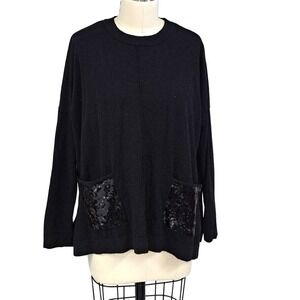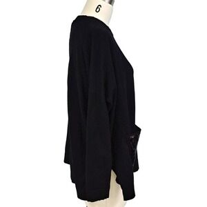 Donna Karan black wool knit lagenlook sweater w/sequin pockets S