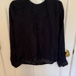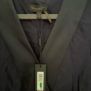 Donna Karan faux wrap top navy with black silk trim. NWT size L