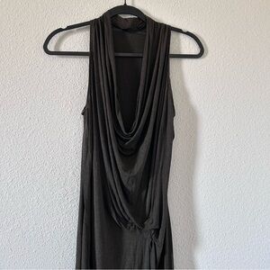 Donna Karen New York Black Label Women’s Cowl neck Dress Medium Brown Asymmetrical Sleeveless in great condition/ stretchy/ drape detail / handkerchief hem