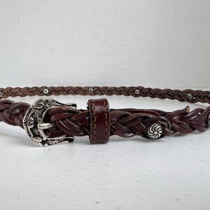 Donna Katz Women's Brown Braided Skinny Belt Genuine Leather Size M