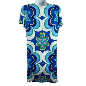 Donna Martin Bold Blue Floral Kaleidoscope Back Zip A Line Dress Size 6 NEW
