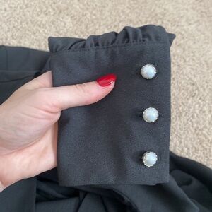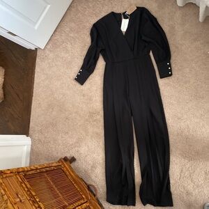 Beautiful black jumpsuit from Donna Mizani. Vneckline and wide leg pants. Never worn, with tags. Pearl button details.