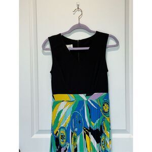 Donna Morgan Black Multicolored Printed Pleated Bottom Dress Size 0