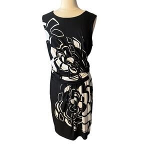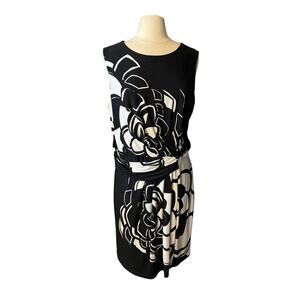 Donna Morgan Black and White Floral Dress Size 16 Knee Length Sleeveless