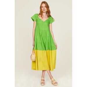 Donna Morgan Colorblock Babydoll Cap Sleeve Maxi Dress Women's 0 Resort Vacation