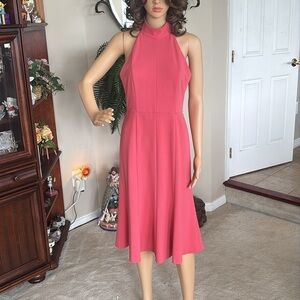 Donna Morgan Coral Tailored Midi Dress Halter Mock Neck Sleeveless Fit & Flare