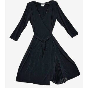 Donna Morgan Dress 16 Midi Black Long Sleeve Chiffon Fanning Jeweled Wrap style