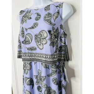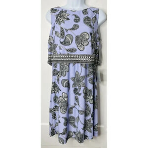 Donna Morgan Dress 8 Paisley Purple Stretch Tiered Classic Floral Business Soft